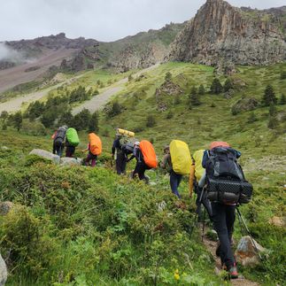 Поход вокруг Эльбруса — ваш шанс увидеть высочайшую вершину Европы с уникальных ракурсов, недоступных обычным туристам. Вы пройдёте 5 горных перевалов, пересечёте альпийские луга, ледники и живописные ущелья, где древние вулканические ландшафты соседствуют с сосновыми лесами, а бурные реки пробивают себе путь через глубокие каньоны. Вы побываете у истоков Кубани, на одном из крупнейших и красивейших высокогорных озёр Приэльбрусья — Сылтран-Кёль, отдохнете в расслабляющих горячих источниках и отведаете вкуснейшую родниковую воду из древних нарзанных источников.