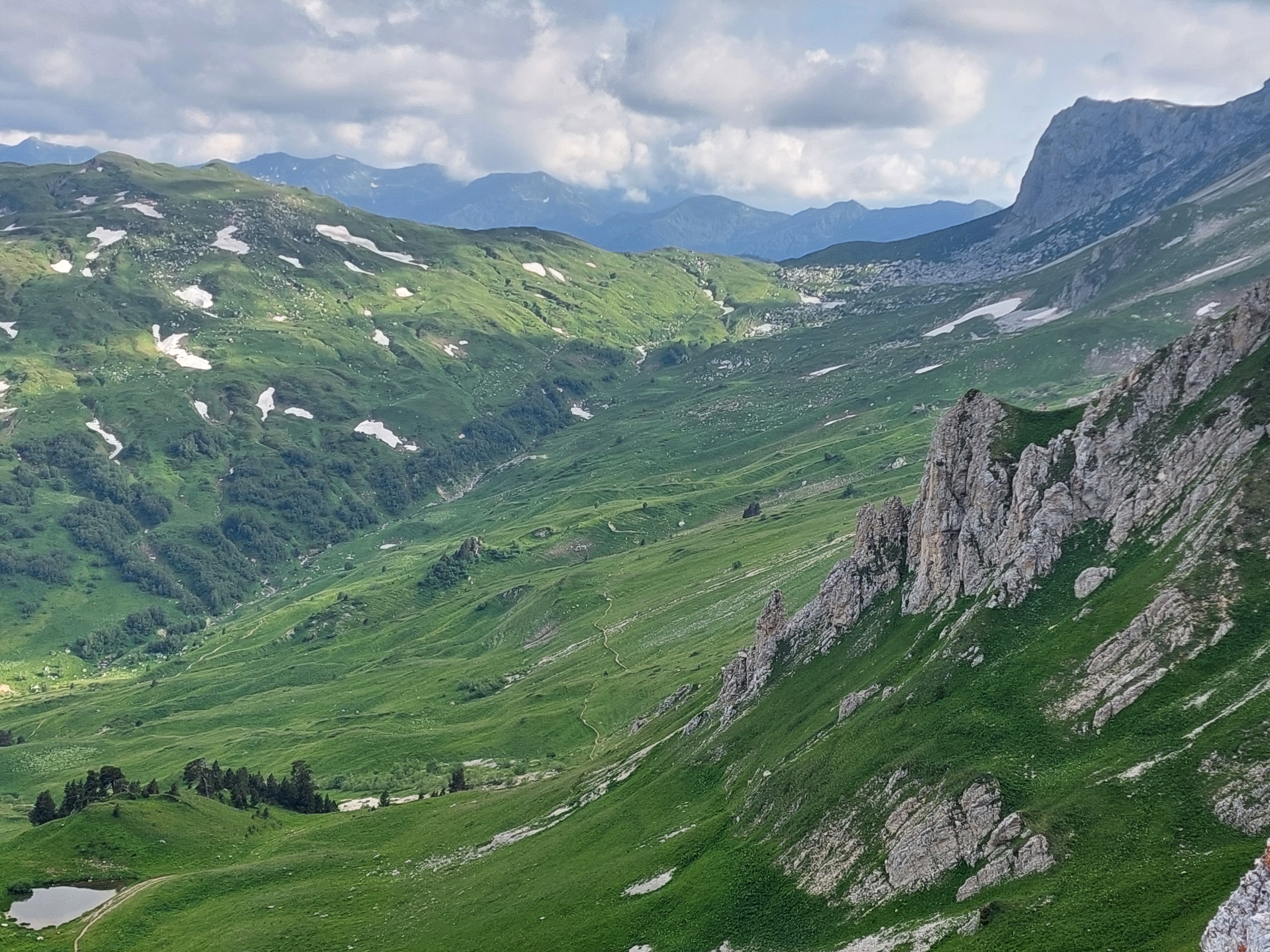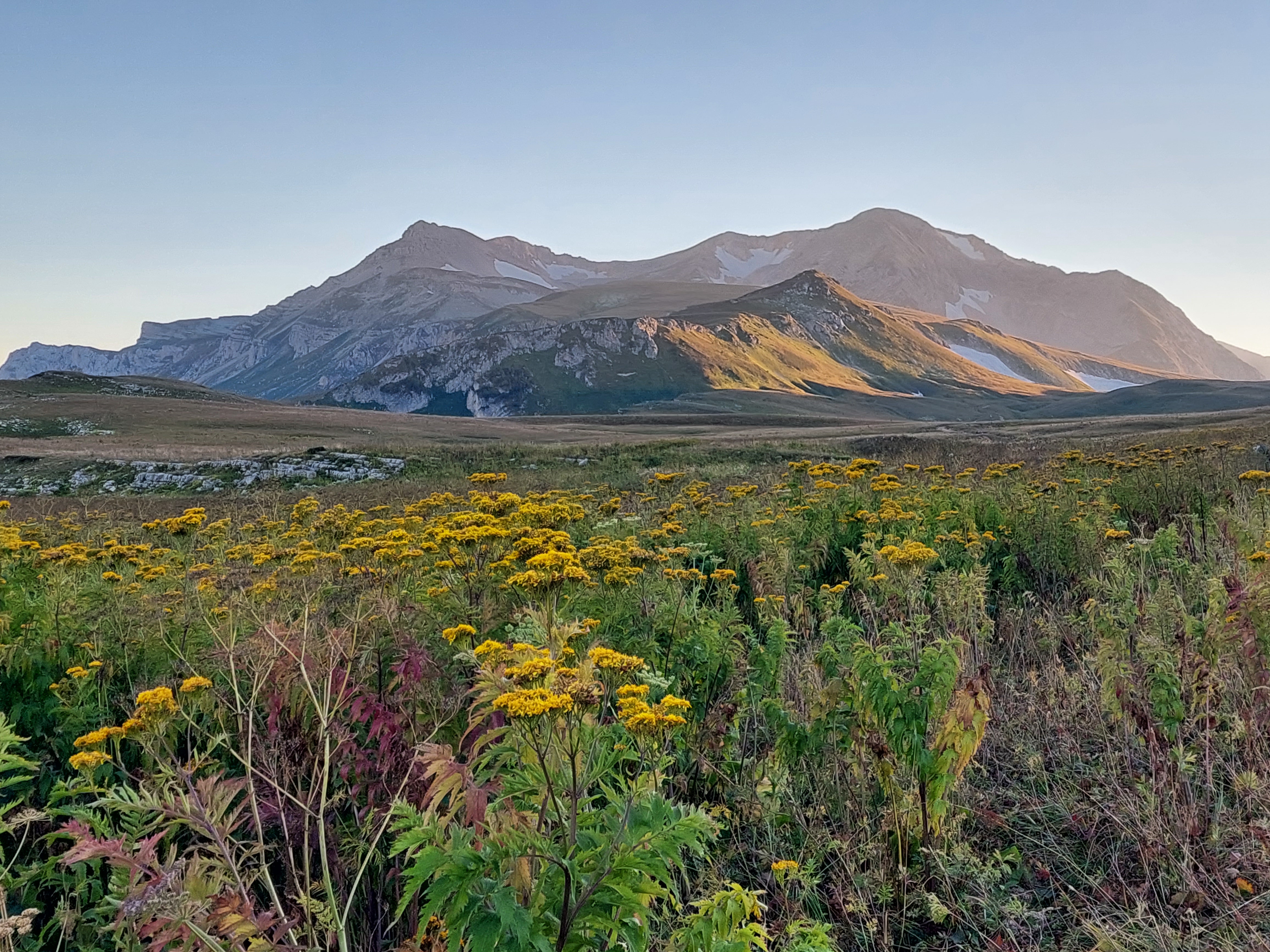 Продвигаясь по пустоши и субальпийской зоне плато, мы повстречаем карстовые воронки глубиной до двух этажей. Даже летом в них можно встретить снег. Спустя несколько часов мы выйдем на широкую ровную поляну под названием Инструкторская. Бежит чистая горная река Армянка. Вокруг только пологие альпийские холмы, а вдали нас приветствует и ждёт в гости каменный красавец Оштен.