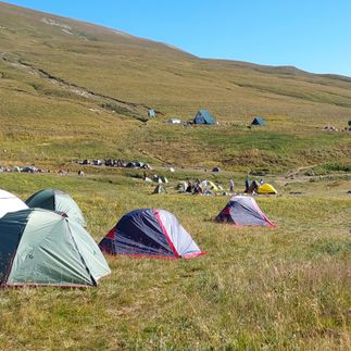 Здесь уже стоят разноцветные палатки других участников — значит, пора ставить и наш лагерь. Сегодня мы будем ночевать на высоте 2050 м. над уровнем моря. После сытного ужина мы познакомимся поближе и устроим культурный вечер под миллионами звёзд: познакомимся, побеседуем, посмеёмся, поиграем, попоём под укулеле.