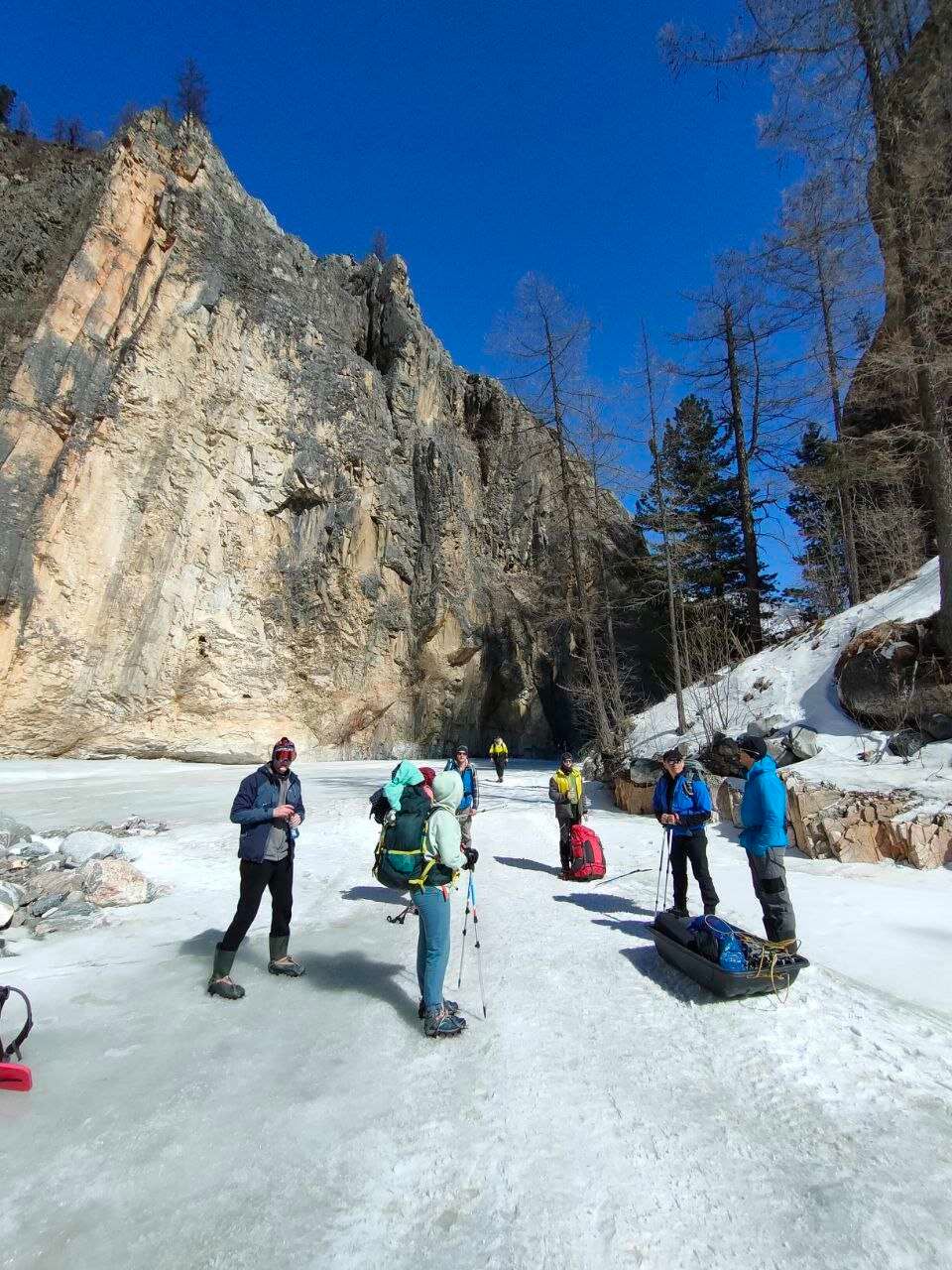 Наше приключение начинается в Иркутске. Рано утром мы выезжаем на транспорте к месту старта маршрута. Дорога занимает около 5-6 часов, включая остановку в кафе, где можно перекусить, и оформление пограничных пропусков. По пути открываются потрясающие виды на сибирские просторы, горные хребты и бескрайние леса, а инструкторы расскажут о предстоящем маршруте и дадут полезные рекомендации. После прибытия к реке Белый Иркут мы распределяем снаряжение и отправляемся к базовому лагерю. Пеший переход займет около 4 км, без особого набора высоты — этот путь проходит вдоль живописного ущелья, среди скал и снежных полей. Двигаемся в комфортном темпе, наслаждаясь первозданной природой. В лагере нас ждет теплая палатка с печкой, отдых и сытный ужин. Вечером — свободное время для отдыха, общения и подготовки к завтрашнему дню. Ночуем в уютных палатках, набираемся сил перед главным испытанием.