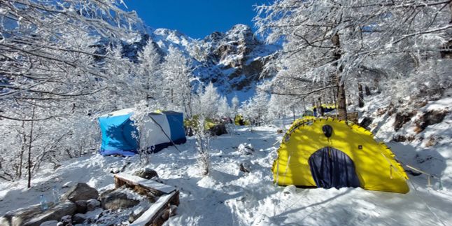 - 3 ночи в горном лагере. Теплые палатки с печкой, горячая еда и баня среди снежных вершин — уют там, где его меньше всего ждешь.