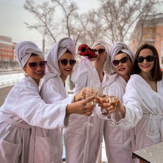 Праздничный вечер только начинается. Впереди сибирская баня,тепло и релакс, для самых смелых - сугробы для контраста.