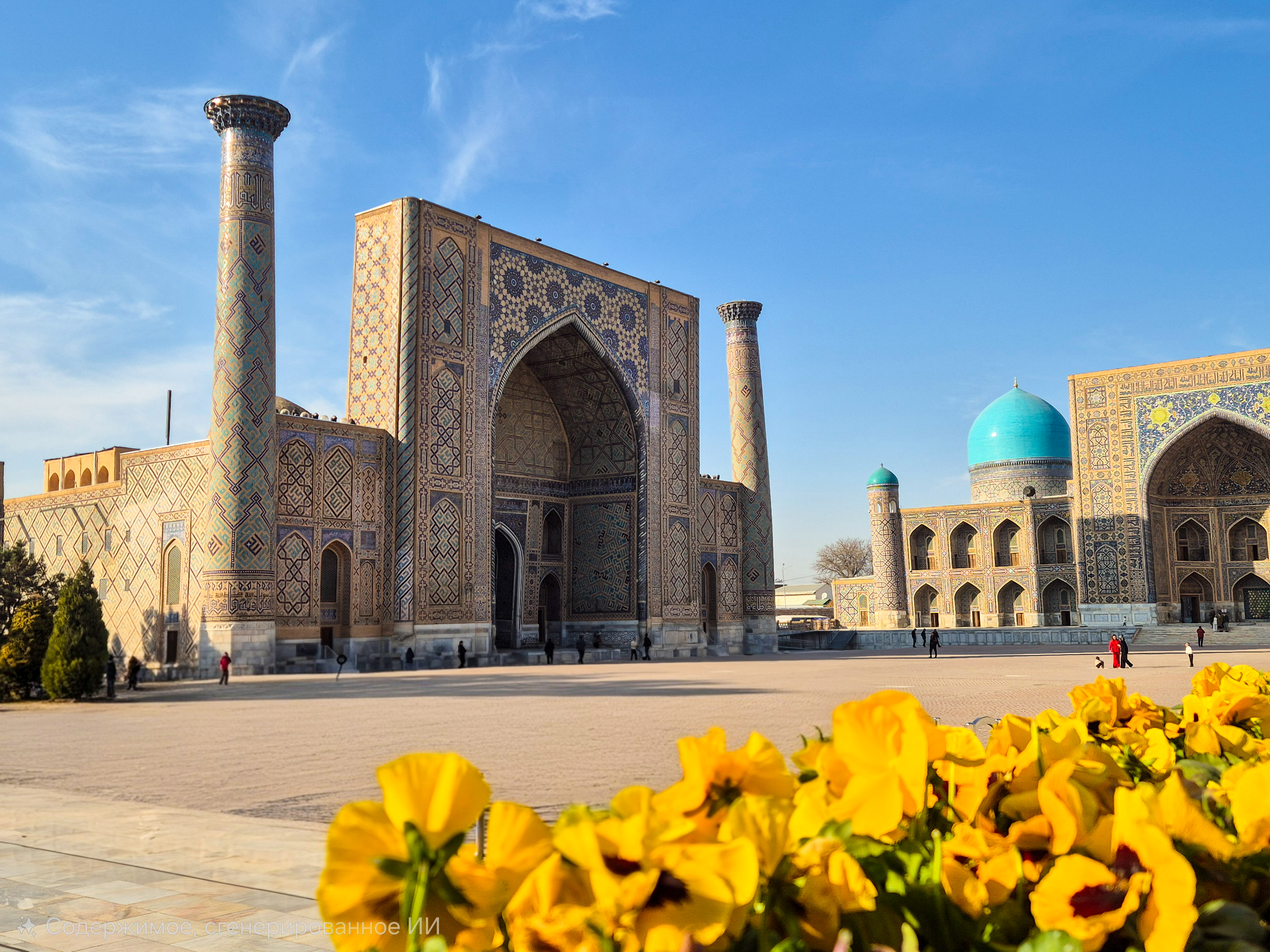 Далее прогуляемся до Площади Регистан это самый узнаваемый символ Самарканда — архитектурный комплекс, образованный тремя нарядными медресе Xvxvii вв.: Тилля-Кари, Шердор с мозаичными то ли тиграми, то ли львами на фасаде и медресе Улугбека, одно из старейших духовных училищ в Средней Азии.