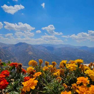 Обед в горах в местном кафе (рекомендуем попробовать маставу - это суп с рисом и зажаркой, шашлыки из баранины или форель на мангале)