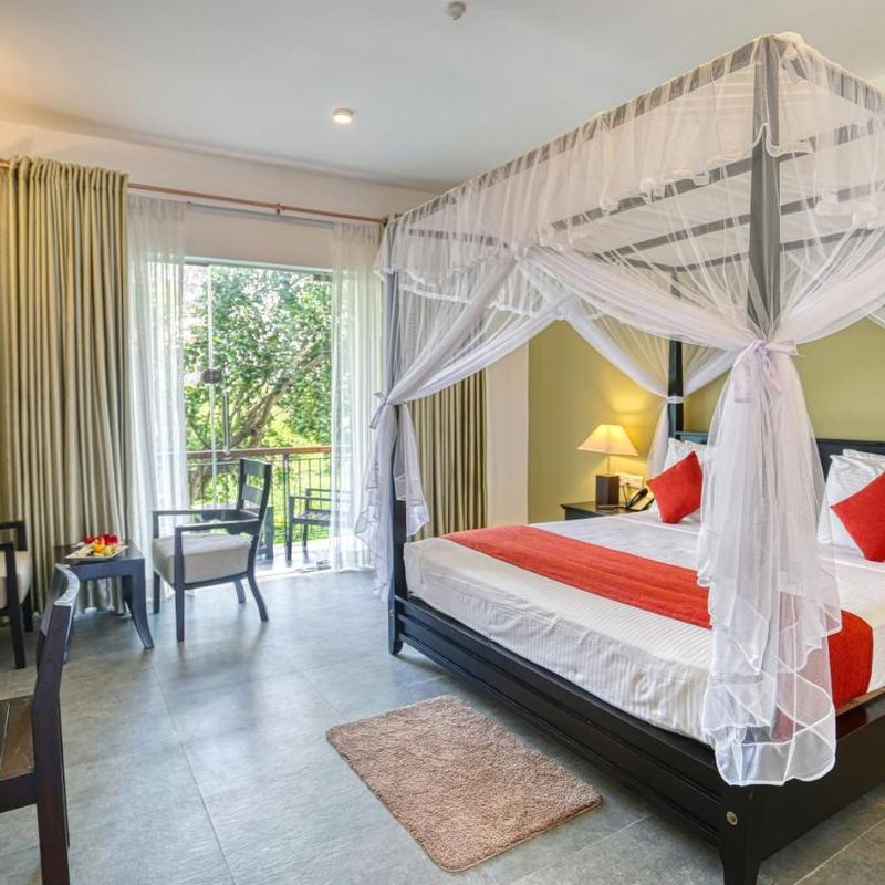 2) Mount Blue Kandy – маленький, но очень красивый и уютный отель с современными номерами. Несмотря на отсутствие разнообразия блюд на завтраке и ужине, проживание нам понравилось. Из окон номера открывался красивый вид на город, и никаких насекомых.