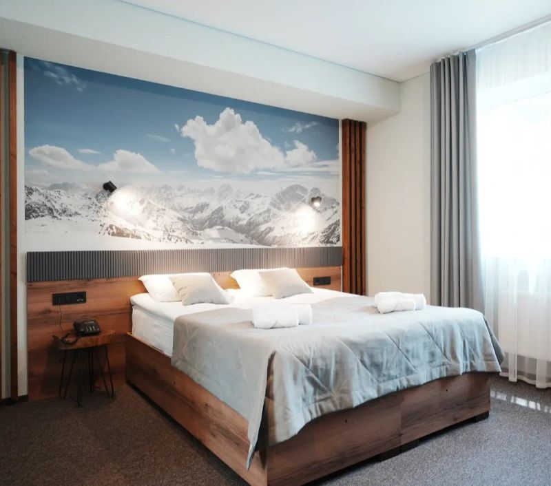 На ужин заезжаем в Тырныауз, а после - заселяемся в отель в Приэльбрусье.