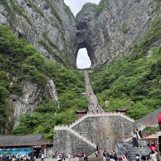 Тяньмэньшань гора Небесные ворота (длительность - 5 часов), самая высокая гора в Чжанцзяцзе, 1518 метров, подъем на самой длинной канатной дороге (7500 метров), горная дорога, стеклянная дорога - 60 метров, высота -1300 метров над уровнем моря. Буддийский храм, на эскалаторе спуск до пещеры Тяньмэнь, спуск пешком 999 ступеней ( вместо спуска по 999 ступенькам, можно воспользоваться эскалатором, который состоит из пяти секций, за 32 юаня), спуск на автобусе до выхода.