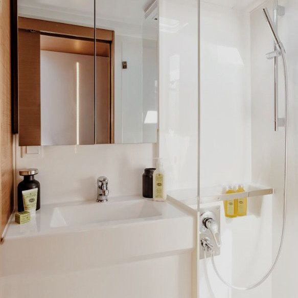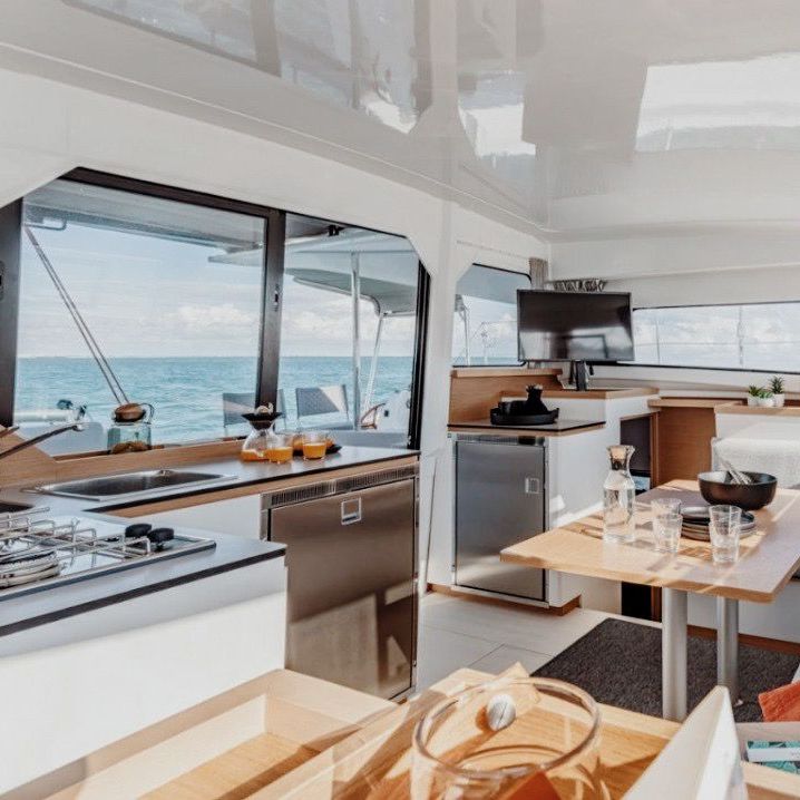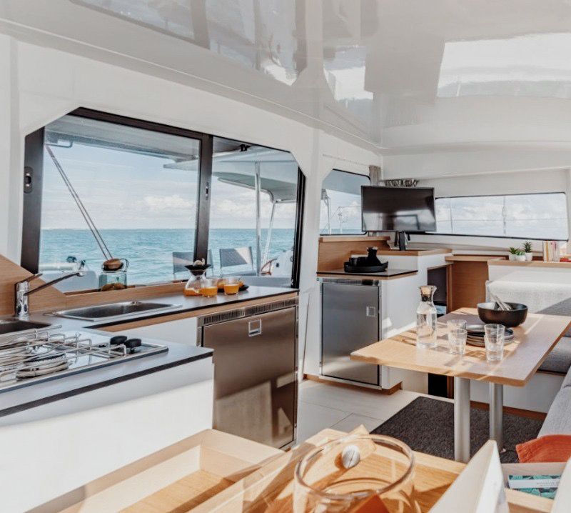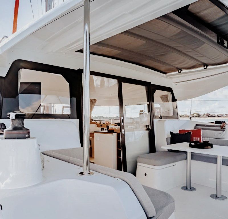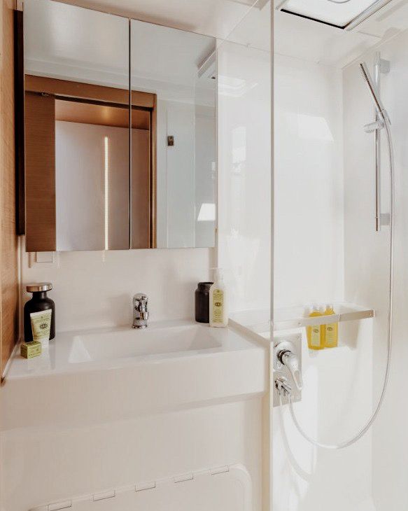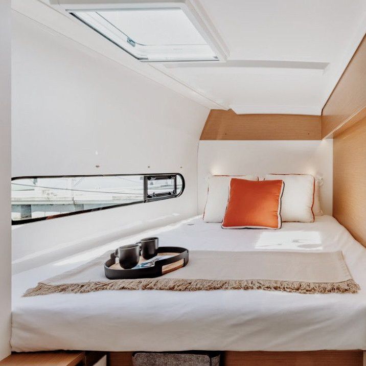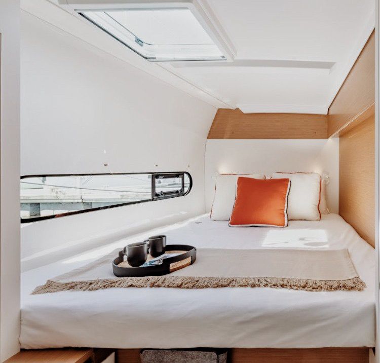Размещение — в двухместных каютах. Уютно, но тесно не будет: это твоя личная спальня, а весь катамаран — наш общий дом.