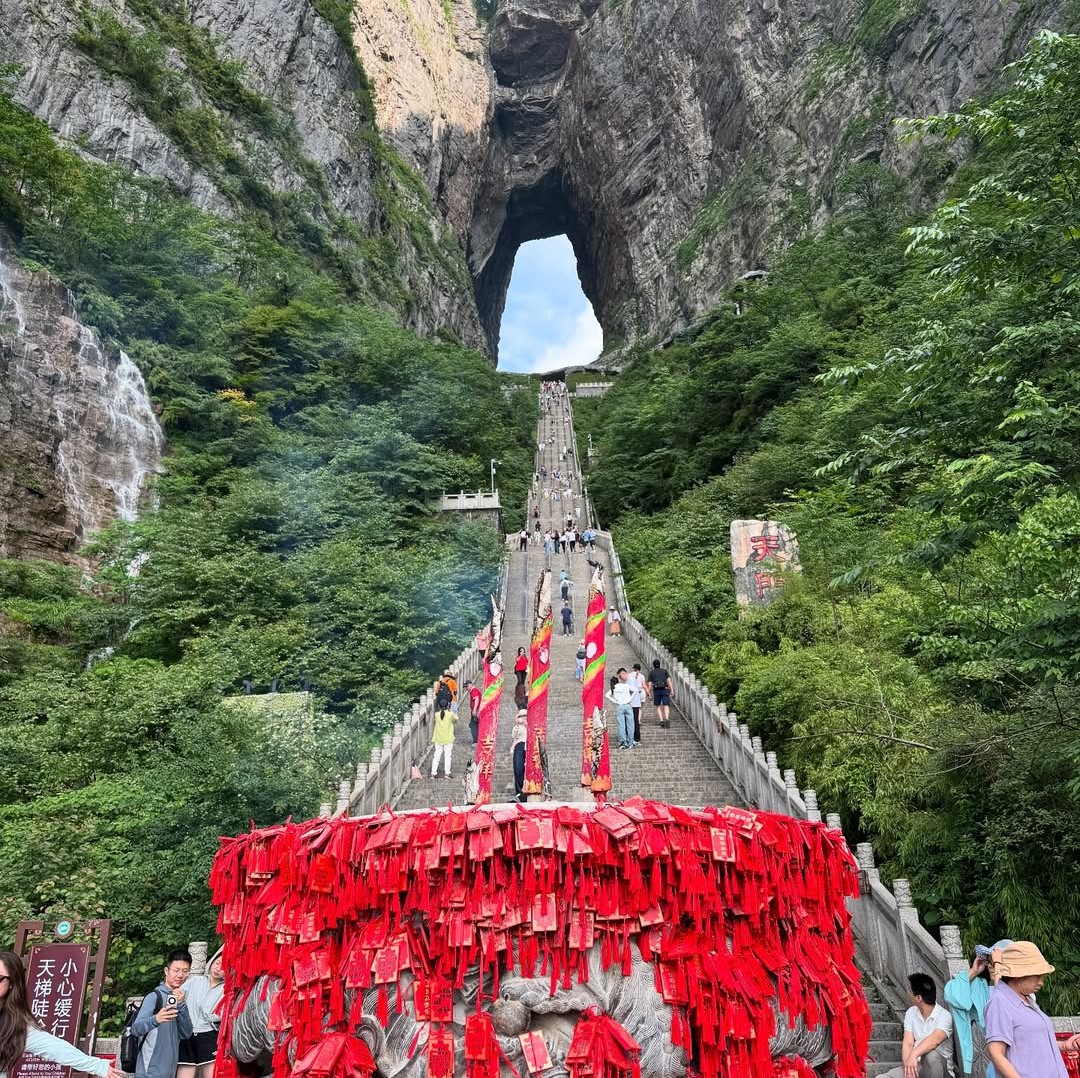 На вершине горы мы прогуляемся к Небесным вратам — огромной арке, вырезанной в карстовых породах, которая является природным чудом. Затем нас ожидает прогулка по впечатляющим стеклянным мостам и живописным тропинкам вдоль отвесных скал, откуда открывается потрясающий вид на знаменитую дорогу 99 поворотов.