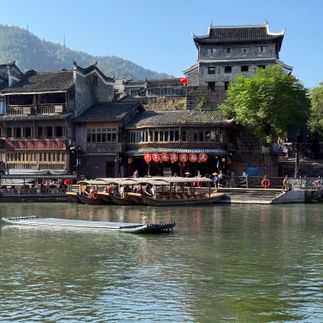 После завтрака мы отправляемся в волшебный город Фэнхуан, что в переводе означает феникс. Появление этой мифической птицы считалось символом мира и процветания, и память о ней сохранилась в городских преданиях и легендах. Фэнхуан представляет собой настоящий, неподдельный Китай, каким он был до начала модернизации: деревянные домики на сваях расположены вдоль реки, а каменные мостики соединяют улицы. Торговцы народа мяо предлагают фрукты и разнообразные товары. Мы будем гулять по городу и наслаждаться атмосферой шедевра средневековой архитектуры Китая.