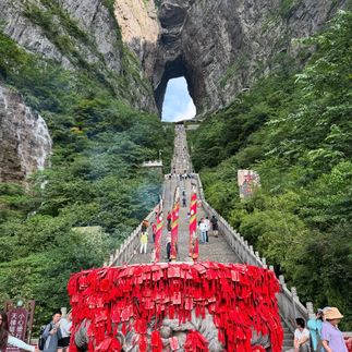 Затем отправимся на гору Тяньмэнь, где нас ждет захватывающая канатная дорога длиной 7,5 км с набором высоты более 1,2 км.