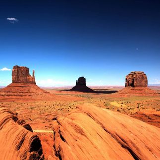 Уникальное геологическое образование, расположенное на территории резервации индейского племени Навахо - один из национальных символов Соединённых Штатов. Представляет собой плато, верхний слой которого был полностью разрушен, но над ровной пустынной поверхностью остались скалы останцы, сложенные из красного песчаника: монолитные глыбы почти правильной прямоугольной формы с плоскими вершинами. Здесь снимались сцены фильмов Назад в Будущее-3, Беспечный ездок, Форест Гамп и много кинопродукции на тему вестернов