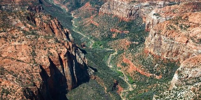 В песчанике Навахо Девственная река пробила замысловатые восхитительные каньоны. Скалы поражают своим оранжевым цветом. Кое-где между ним появляются черные слои следы вулканической лавы. Часто можно увидеть колонии бактерий в виде замысловатых узоров на отвесных стенах.