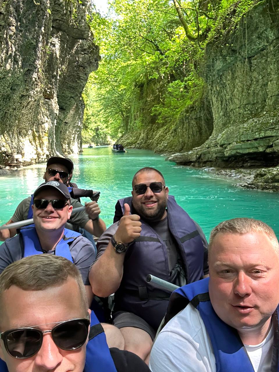 Изумрудный каньон: Нас ждет прогулка на лодках по Мартвильскому каньону, где сквозь отвесные скалы течет бирюзовая вода и шумят каскады водопадов.