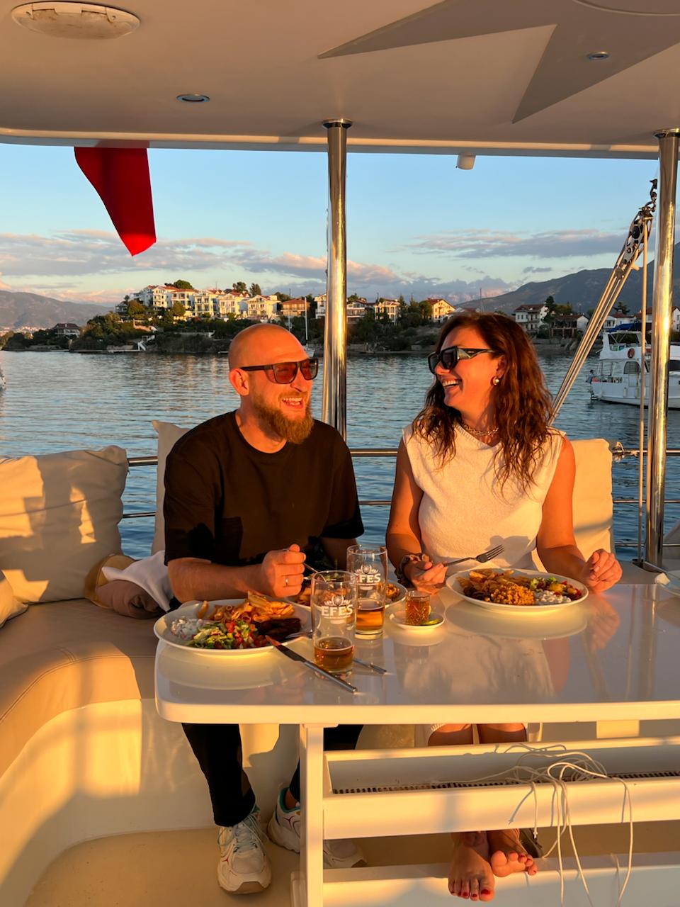 Вечером — идеальное завершение дня: двухчасовая прогулка на яхте по акватории Фетхие с ужином на борту. Мягкий ветер, спокойная вода, закат в золотых тонах и уютная атмосфера создают тот самый момент, ради которого хочется возвращаться в Ликию снова и снова.
