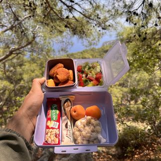 - Трёхразовое питание на маршруте. Завтраки и ужины готовят в местах ночевок, на обед выдаются ланч-боксы с полноценным питанием (горячее блюдо, овощи, фрукт, шоколад, орехи). Подходит вегетарианцам.