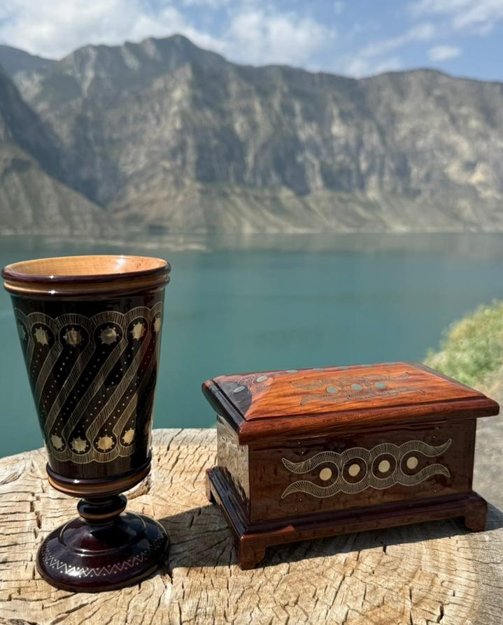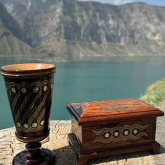 Спускаемся к машине и возвращаемся в автобус. Едем на мастер-класс по унцукульской орнаментальной насечке мельхиором по дереву. Узоры у каждого мастера свои, также эти узоры передаются из поколения в поколение. Мы своими руками попробуем создать нечто изящное. При желании можно приобрести готовые изделия на подарок.
