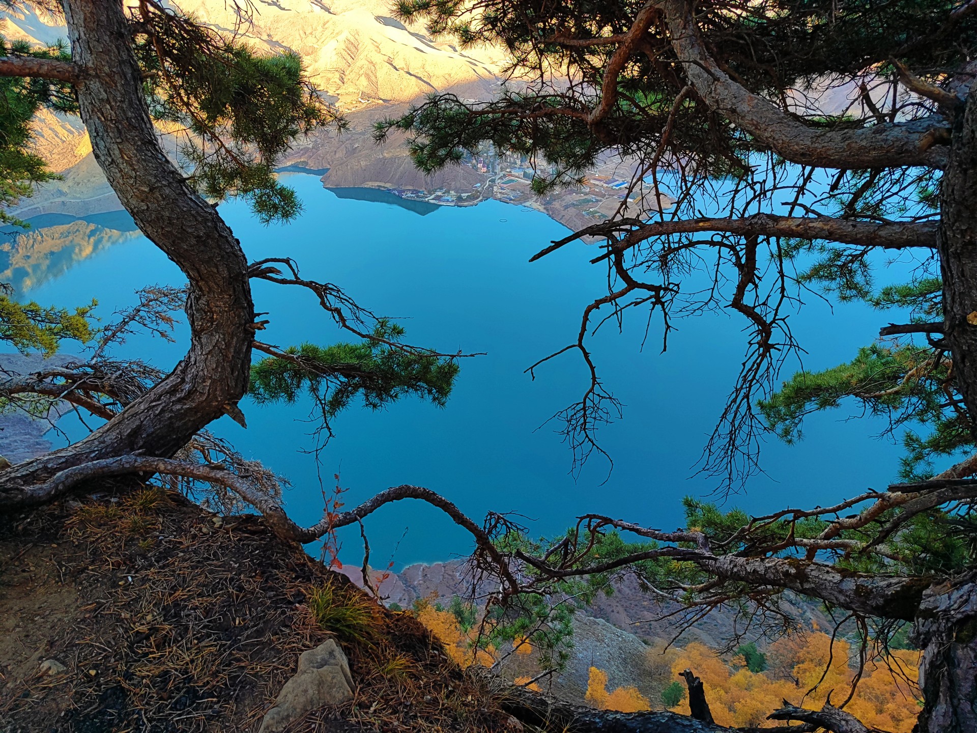 По приезду меняем транспорт на более проходимый и сразу же поднимаемся на смотровую площадку в с. Харачи. Далее 15-20 мин пешего пути и мы на месте. Отсюда перед Вами откроется вся красота Ирганайского водохранилища, а также на пос. Шамилькала.