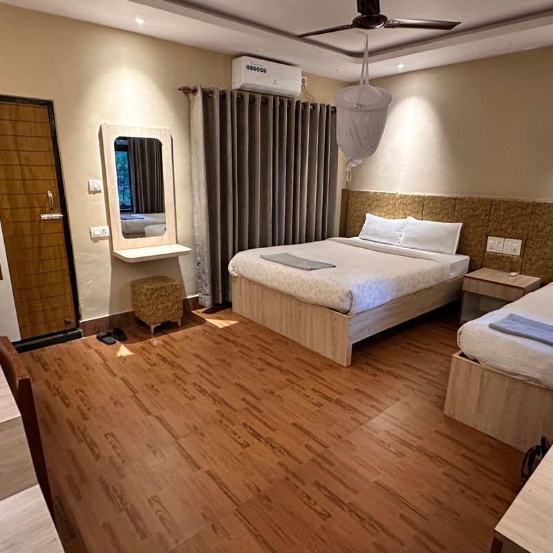 Сегодня у нас начинаются настоящие приключения! В 07:00 мы выезжаем (3 часа в пути) на точку, с которой встаем на воду, и у нас начинается настоящий рафтинг по реке Тришули. В течение 4 часов мы будем идти по горной речке, минуя пороги и шиверы, с остановкой на обед в живописном месте. По окончании рафтинга мы садимся в автобус и через 3 часа прибываем в национальный заповедник Читван.