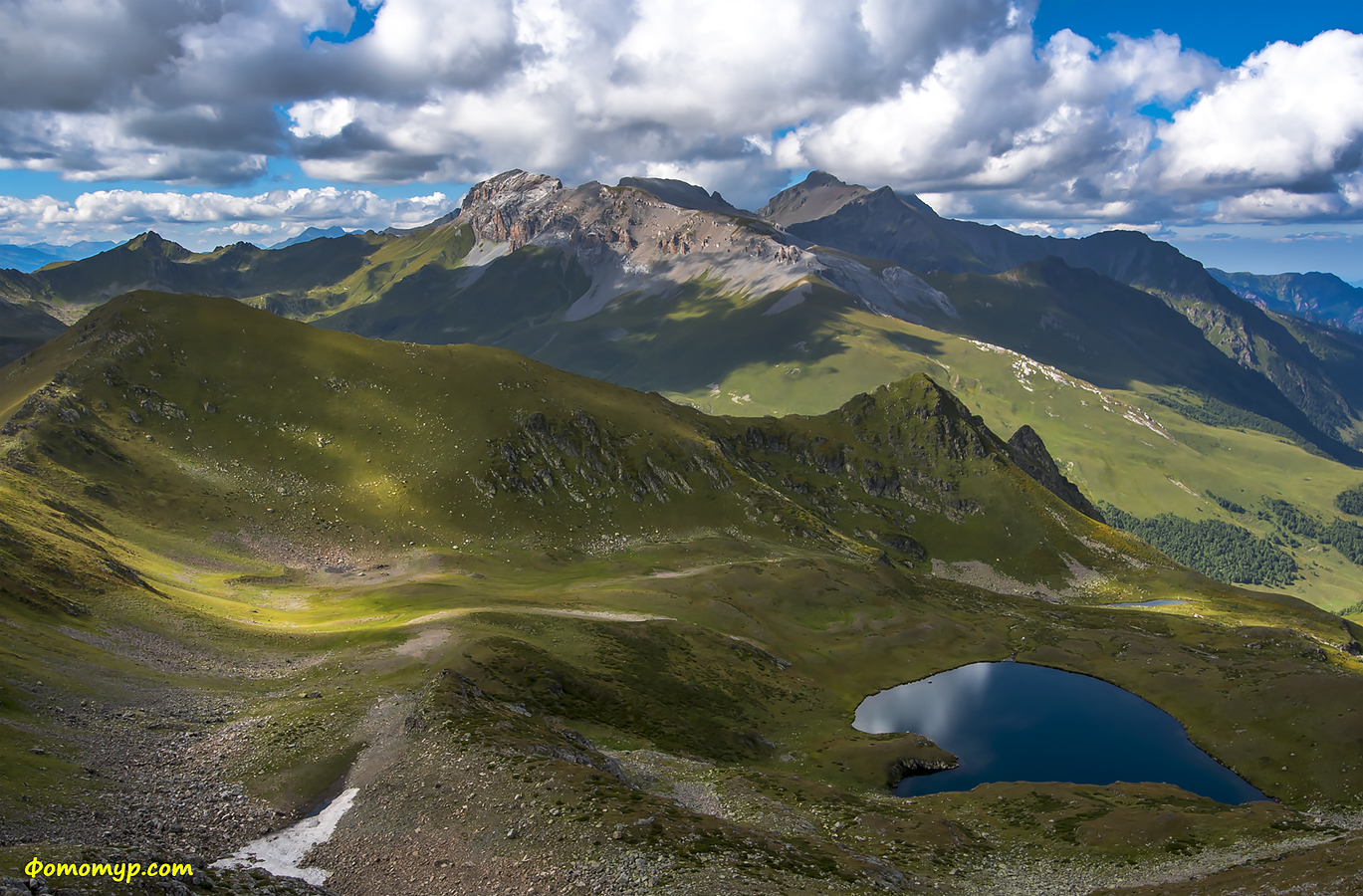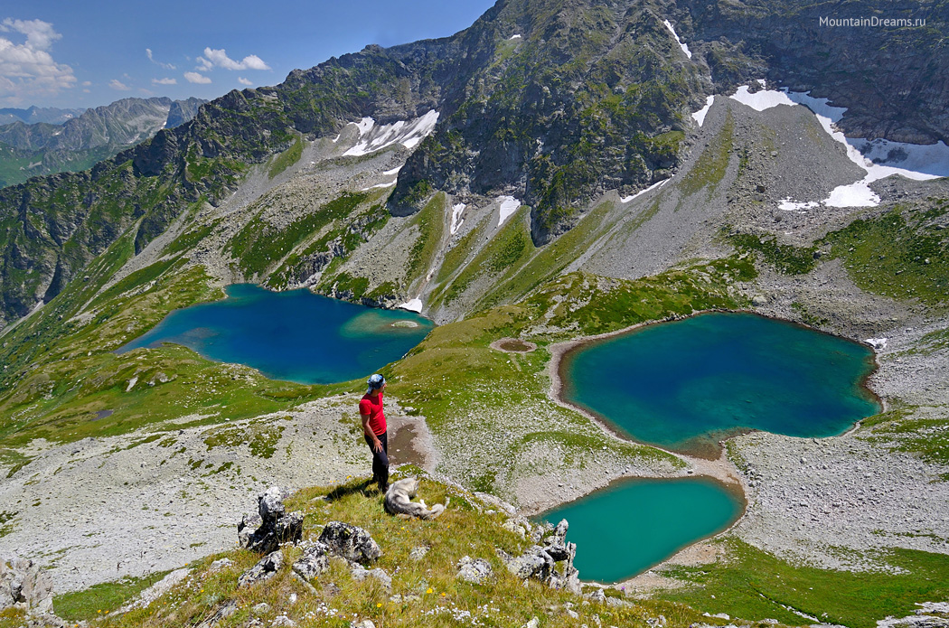 раскинулись группы жемчужных озер. Проходим по гребню несколько
