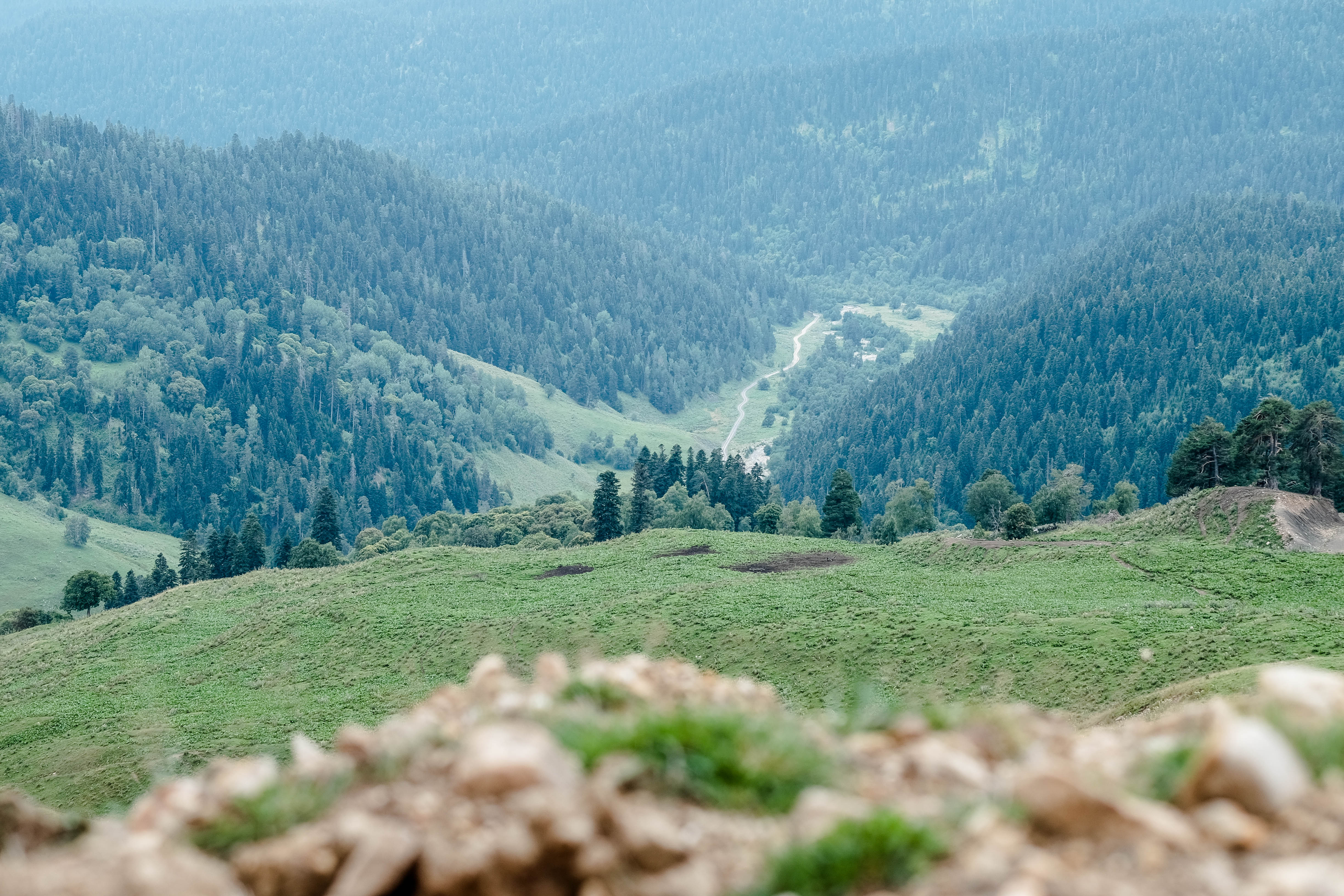 лежит большая долина реки Пхия, в сторону вершин Главного Кавказского