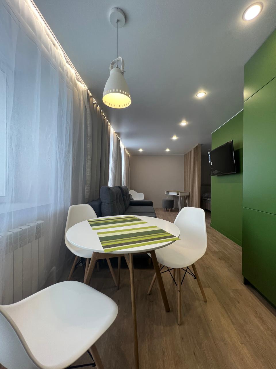 - Проживание в уютных апартаментах, рассчитанных на двоих гостей. Апартаменты оборудованы всем необходимым для приятного пребывания: качественный ремонт, туалетные принадлежности, полотенца, фен, стиральная машина, кухонные принадлежности, Wi-Fi.