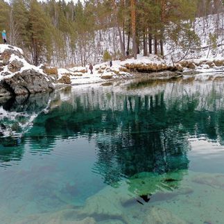 После обеда отправимся смотреть на знаменитые Голубые глаза Катуни или Катунские ванны- это место летом является полноценным руслом реки, но с поздней осени и всю зиму уровень воды в Катуни сильно падает, и в пойме остаются небольшие озера. Озера очень напоминают глаза, за что это место так и прозвали - глазами Катуни. (Передвижение до самих озер на Уаз, 8 км туда-назад. Расчетное время на локации 1 час)