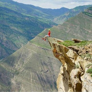 Хунзахское плато. С одной стороны, мы остаемся в горах, а с другой — находимся на равнине, где мирно пасутся коровки. Любители пощекотать нервы смогут прыгнуть в неизвестность с альпинистским снаряжением.