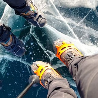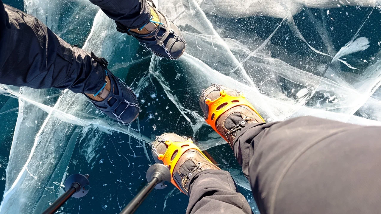 Наш маршрут пеший, зимний, передвигаться будем по льду. Для этого используются ледоступы эдакие резиновые кошки. Мы предоставим каждому 1 пару ледоступов. Можно самостоятельно взять одни про запас.