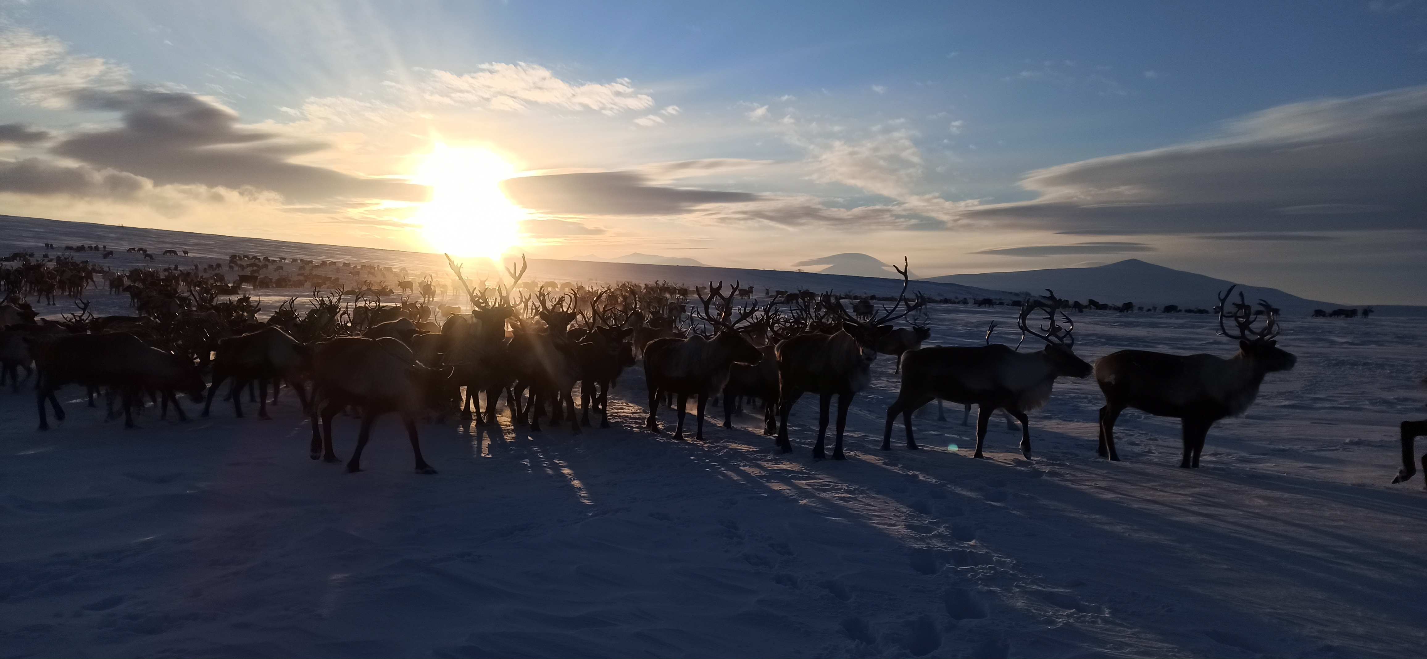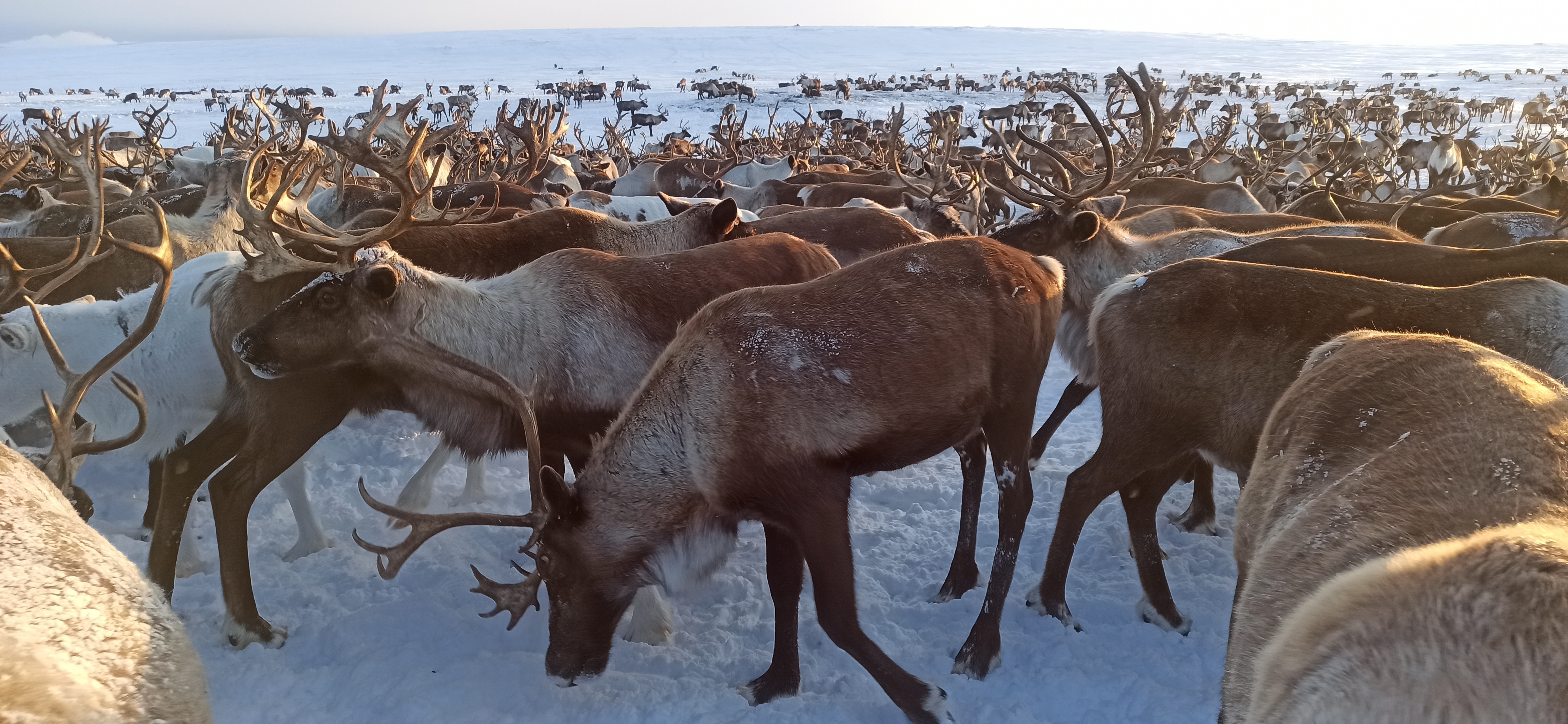 8:00 - 16:00 - Главное приключение тура! После сытного завтрака мы садимся в нарты снегоходов и устремляемся навстречу легенде - к кочующему табуну Северного Камчатского оленя, насчитывающего до 2000 особей!