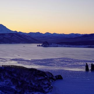 Захватывающая поездка по заснеженным просторам Авачинской губы на снегоходах, с комфортными остановками в укромных зимних бухтах Малолагерная и Большелагерная, где морозный воздух наполняет лёгкие, а тишина зимней природы завораживает.