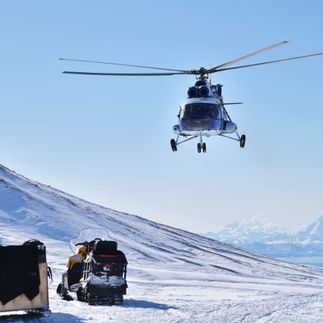 - Безопасный и захватывающий маршрут на снегоходах, расстоянием в 20 км к подножию Корякского и Авачинского вулкана