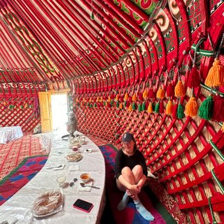 Утро начинается с переезда к южному берегу Иссык-Куля. По дороге мы пообедаем в гостевом доме Кызыл-Туу, где мы увидим процесс строительства юрты: село известно как главный центр производства этих традиционных жилищ, их используют по всей стране и экспортируют за границу. Далее наш путь продолжится к Аксайским каньонам, где короткая прогулка открывает впечатляющие виды на резные скалы и узкие ущелья.