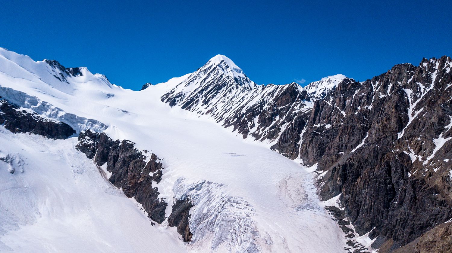Ледник Большой Актру, площадью более 11 кв. км и протяженностью около 8 км, является главным и самым крупным из ледников Актру. Мощность льда в некоторых местах достигает 350 м. Он имеет два рукава — меньший по размеру Правый Актру и больший — Левый Актру.