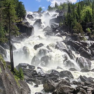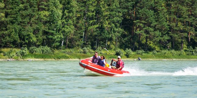 Заезжаем в с. Барангол, где по совершим моторафтинг по Катуни с заездом на Камышлинский водопад.