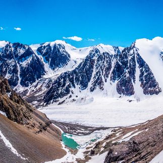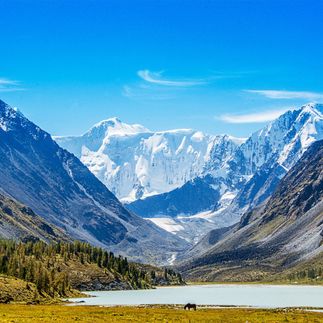 После завтрака выход вдоль бурлящей реки Актру, мимо горных бараньих лбов вверх, по леднику до Голубого озера (2850 м над у.м.). В хорошую погоду открывается четвертая вершина Алтая Актру (4075м). Живописные виды на пики Кара-Таш, снежный Купол, Актру-Баш, Кызыл-Таш, Юбилейный, ледники Малый Актру, Правый и Левый Большой Актру. Подъем достаточно крутой и требует физической выносливости.