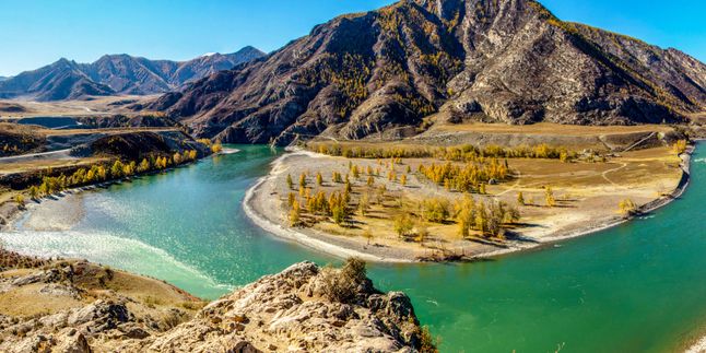 Наконец мы добираемся до места, где воды бирюзовой Катуни соединяются с мутно-молочными водами Чуи. Коренные жители Алтая именуют его Чуй-Оозы, для них это священное место Место Силы.