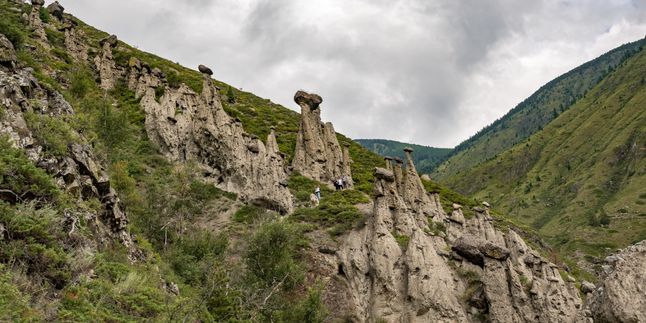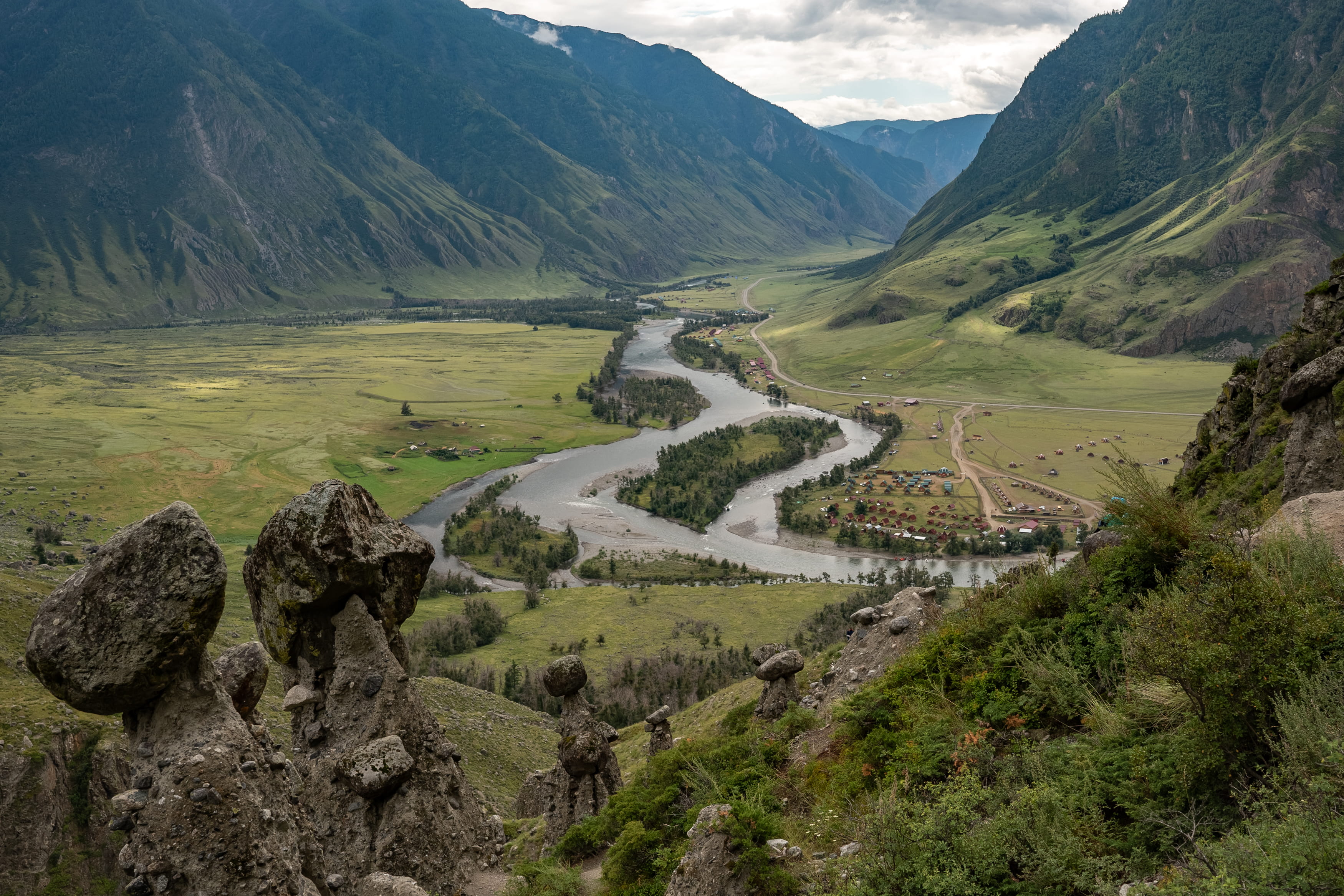 Утром переправляемся через реку Чулышман и идём к Каменным грибам. Каменные грибы-уникальное природное явление, созданное самой природой. Долгие годы горные породы выветривались и вымывались, образуя причудливые конструкции.