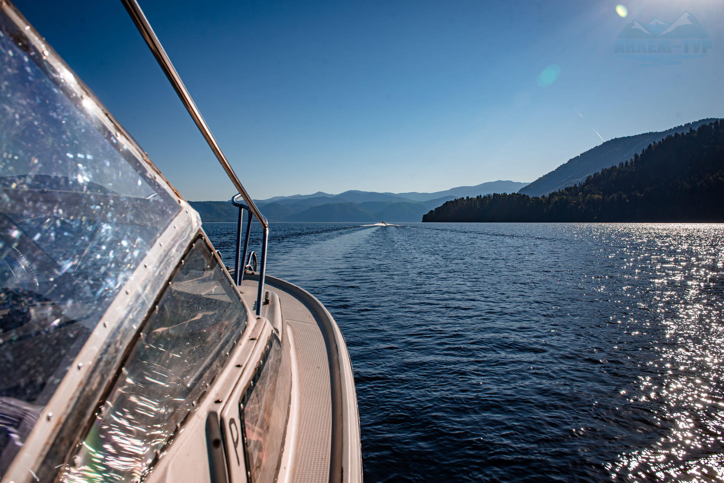 - Катер на Телецком озере;