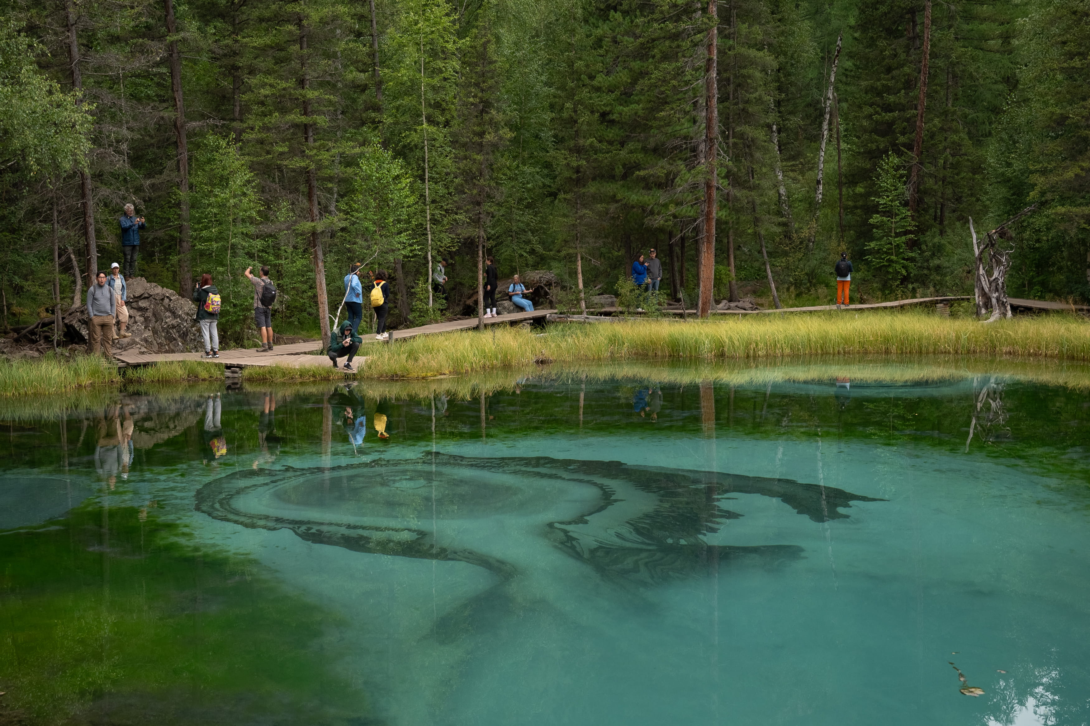 Обед у нас запланирован в с. Кош-Агач. До села Кош-Агач будем ехать через живописную Чуйскую степь. На обратном пути делаем остановку у Гейзерного озера. Озеро уникально и имеет свою хрупкую экосистему, зимой оно не замерзает.