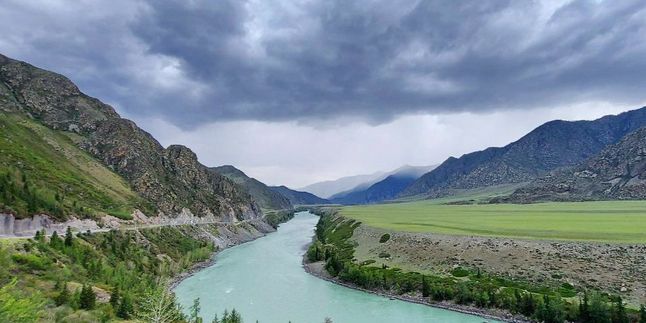 Слияние рек Чуи и Катуни — священное место, где две могучие реки встречаются, создавая удивительный природный феномен: их воды текут рядом, не смешиваясь, создавая поразительный контраст цветов!