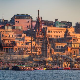 Встреча рассвета на Ганге. Садимся в лодки и отправляемся на часовую прогулку по водной глади. Именно с воды вам откроется панорама всех гхатов Варанаси, а тишина раннего утра создать атмосферу умиротворения и спокойствия. Встречаем восход солнца на реке. Высаживаемся на берег и немного прогуляемся до своего отеля, по пути разглядывая утренние омовения и ритуалы.