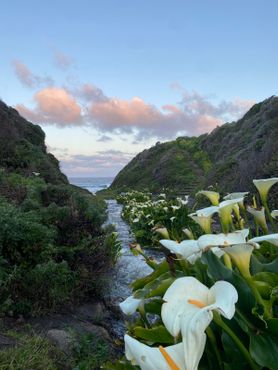 Следуйте по тропе Гаррапата к обрыву, откуда открывается вид на побережье. Затем пройдите по деревянным ступенькам к ручью и спуститесь в долину. Если вы правильно выберете время поездки и приедете в конце зимы или начале весны, эта небольшая долина будет полна тысячами цветущих белых калл, или белокрыльников.