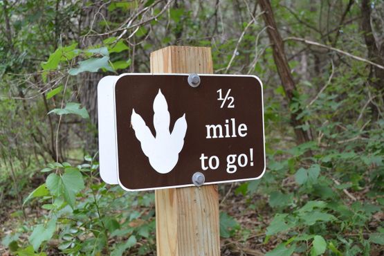 Возьмите карту в визит-центре и идите по третьей тропе. Следуйте указателям до следов динозавров. Идти чуть более 3 км в одну сторону. Наденьте удобную обувь и возьмите побольше воды. Советуем не сходить с троп, потому что в этой части Техаса водятся гремучие змеи. Тропа очень неровная и открыта для пеших и велосипедных прогулок. Поход до следов динозавров и обратно займёт около четырёх часов и будет сложным для маленьких детей.