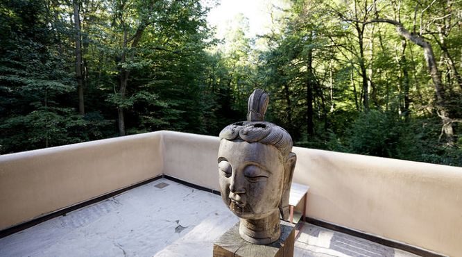 Дом наполнен прекрасными произведениями искусства, среди которых гравюры Пикассо, старинная мексиканская керамика, современные скульптуры и картины Диего Риверы. Здесь также есть средневековые скульптуры Мадонны, африканские статуэтки и предметы старины из разных культур, и даже гигантская голова Будды, украшающая террасу.
