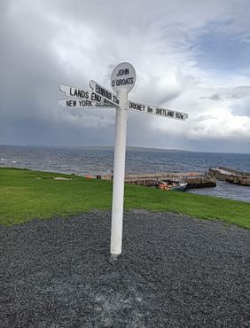 Этот указатель стоит на северо-восточной точке маршрута от Лендс-Энда до Джон-О'Гроутса, самого большого расстояния, которое человек может пройти между двумя городами Великобритании. Его длина составляет 1406 км с юго-запада на северо-восток острова.