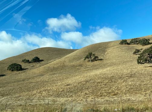 В январе 1996 года фотограф National Geographic Чарльз О'Риэр ехал по шоссе № 121 через Соному, чтобы повидаться со своей девушкой в Сан-Франциско. Он не впервые ехал этой дорогой, но на этот раз его внимание привлёк вид из окна. Трава была особенно зелёной после только что прошедшего ливня, а рассеявшиеся тучи открыли голубое небо с пушистыми белыми облаками. О'Риэр остановился и снял эту сцену на среднеформатную камеру.