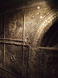 Пройдя через новый вход, вы попадаете в узкий извилистый проход, ведущий в помещение с центральной колонной, и именно здесь можно ощутить очарование этой рукотворной пещеры. Стены и потолок покрыты тысячами ракушек, которые образуют замысловатые узоры в виде деревьев, цветов, людей и многого другого.
