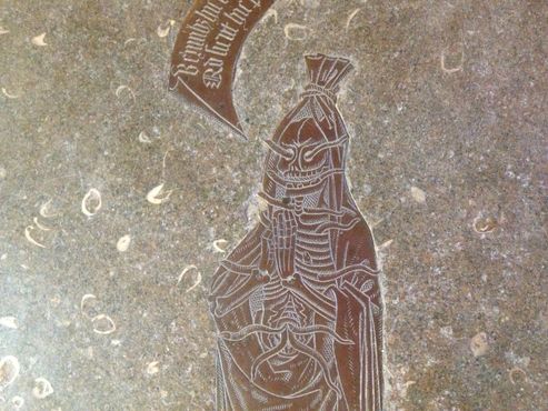 Под ногами трупа есть надпись, которую позже предполагалось дополнить датой смерти Хамстерли, но сегодня, почти 500 лет спустя, здесь остаётся пробел.