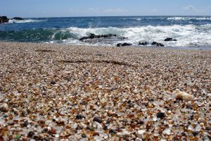 Эта промышленная зона была местом свалки огромного количества мусора, часть которого выбрасывалась на берег в виде крошечных кусочков морского стекла